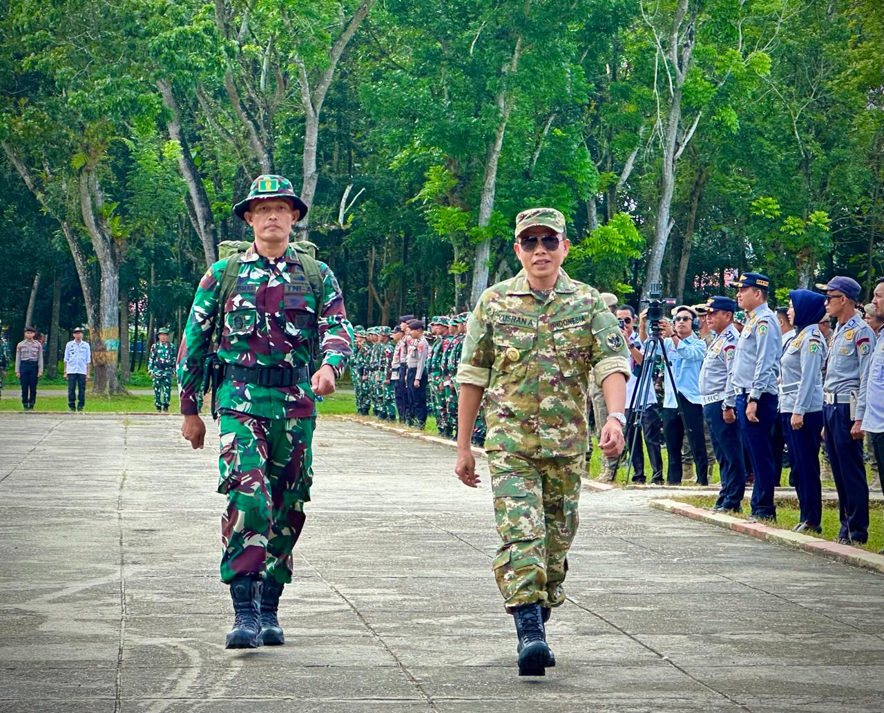 KENDARIPOS.COM KONAWE Sulawesi tenggara. Bupati Konawe, Yusran Akbar saat melakukan penyecekan personil dalam upacara pembukaan TMMD ke-125.