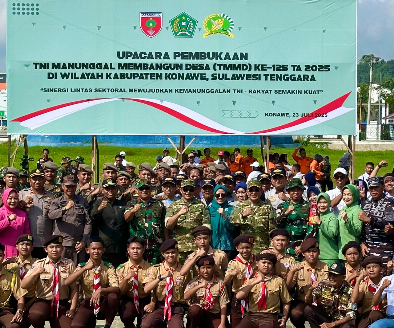 Bupati Konawe, H. Yusran Akbar, S.T., secara resmi membuka kegiatan TNI Manunggal Membangun Desa (TMMD) ke-125 Tahun 2025 dalam sebuah upacara yang digelar di Halaman Kantor Bupati Konawe, Rabu (23/07/2025).