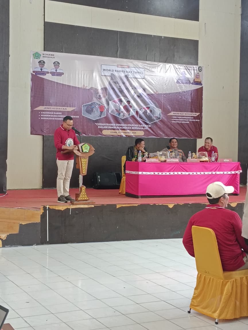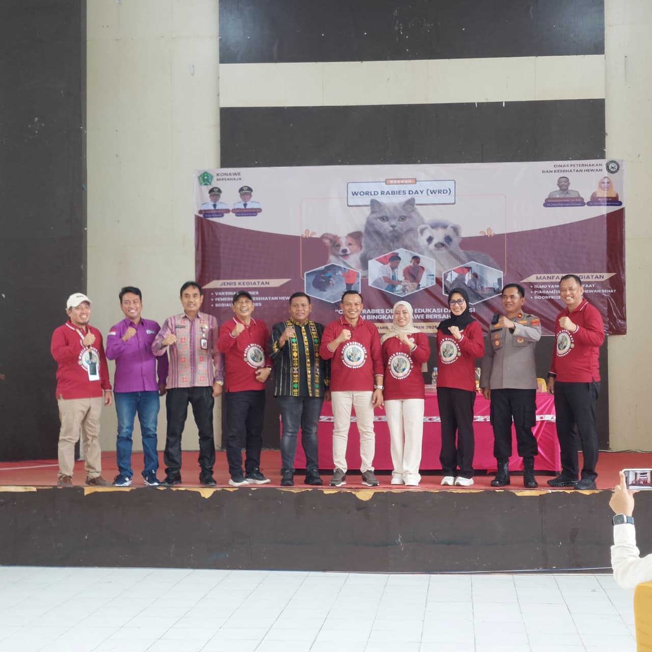KONAWE, KENDARIPOS.COM– Pemerintah Kabupaten (Pemkab) Konawe menunjukkan komitmen serius dalam menanggulangi rabies dengan menggelar peringatan Hari Rabies Sedunia (World Rabies Day) Tahun 2025. Acara yang berlangsung meriah di Gedung Wekoila Unaaha, Kamis (27/11/2025), ini diresmikan langsung oleh Bupati Konawe, H. Yusran Akbar ST yang dihadiri unsur Forkopimda Wakapolres Konawe, Kompol Hasruddin, SE, ME, Ketua DPRD, I Made Asmaya, SPd MM, Sekda Konawe, Dr Ferdinand, Ketua Tim Penggerak PKK Kabupaten Konawe, Hania, Plt Kadis Peternakan dan Kesehatan Hewan, Muh Akbar SP, serta ratusan peserta dari jajaran Puskesmas, Dinas Peternakan dan Kesehatan Hewan, Dinas Kesehatan, desa/kelurahan, dan masyarakat, menandai komitmen bersama yang kuat untuk mewujudkan Konawe yang bebas dari penyakit mematikan tersebut.